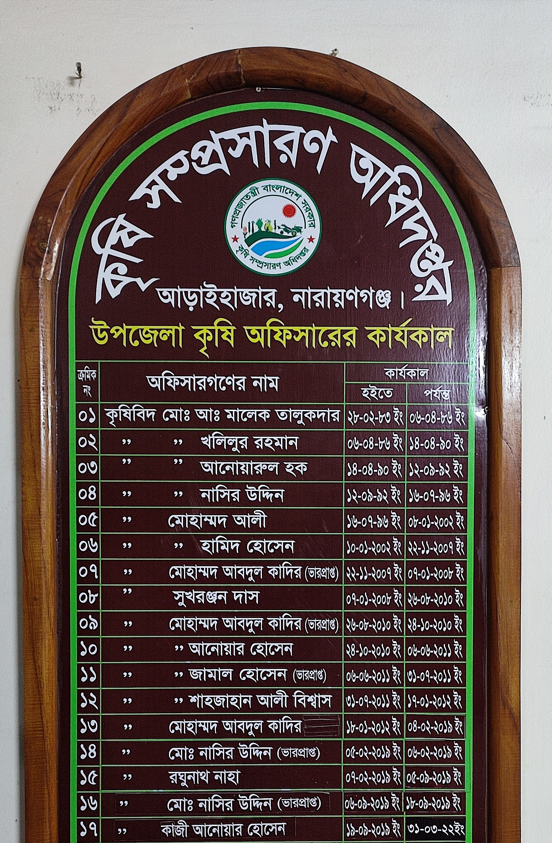 | ১৭ | কৃষিবিদ কাজী আনোয়ার হোসেন | ১৯-০৯-২০১৯ ইং | ৩১—৩-২২ ইং |